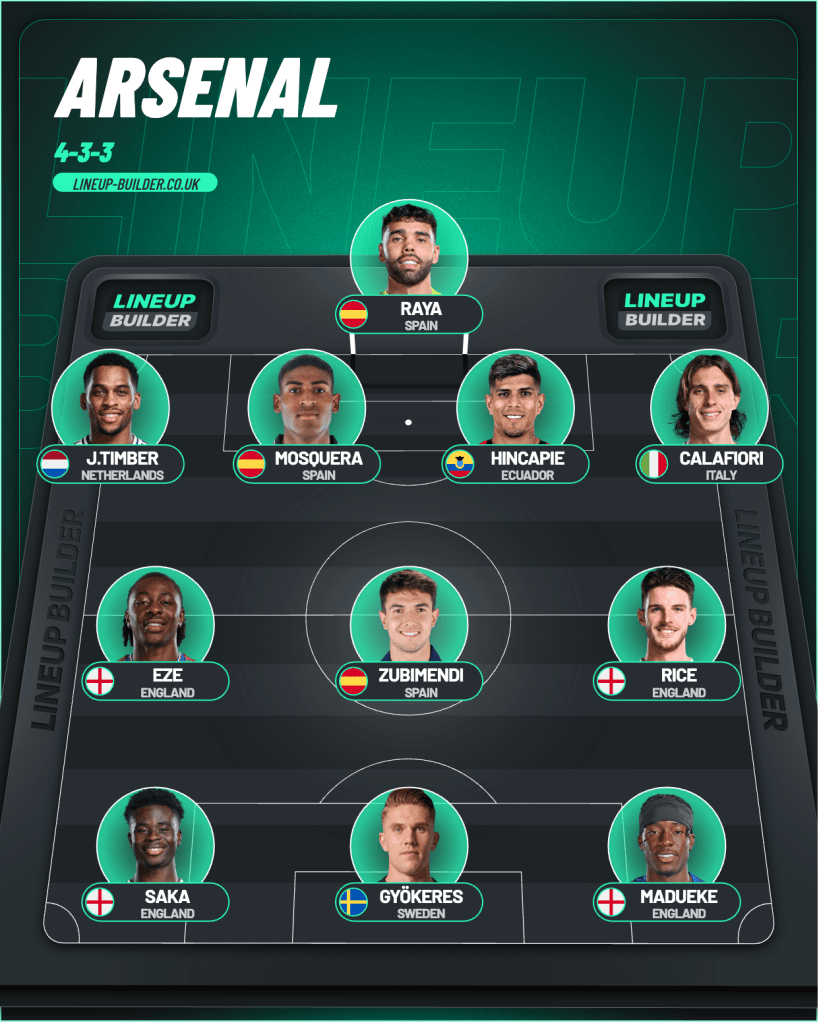 ‘The Horse’ Declan Rice has spoken about his enjoyment of playing every three or four days and has the endurance to do so. He’ll continue his classy partnership with our Spanish maestro Martin Zubimendi, who like Calafiori was replaced early at Chelsea following an earlier yellow card. Eze vs Odegaard is an interesting conundrum, but I will go with the theory that the Norwegian is not quite ready to start just yet. Eze’s form has been good and having come off against Bayern and Chelsea, has not had to play consecutive 90 minutes since the international break. On the left, this feels like more of a Madueke type of game against a deeper defence with less space in behind. Whereas on Saturday, Villa will play a high line, suiting Martinelli’s pace in transitional situations. Saka should get the nod too, although I don’t think it’s impossible that we see Madueke and Martinelli start with one withdrawn for Saka around the 55-60 minute mark. But Saka’s consistency of game time during Arteta’s time in charge and the fact that our other wingers are still regaining full match sharpness should be decisive. Finally, I’d like to see Victor Gyokeres up front, even if he only has an hour in him. I love Merino and the job he does as a makeshift striker is admirable, but when we have a natural number nine fit and available, we should always look to use that option.